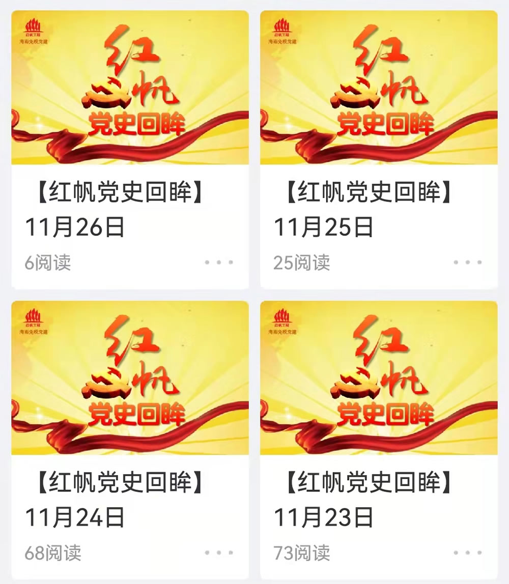 “紅帆工程”創(chuàng)建以來(lái),始終發(fā)揮思想政治引領(lǐng)作用。在公司黨建微信公眾號(hào)先后開(kāi)辟了“紅帆學(xué)習(xí)”“紅帆課堂”“紅帆講習(xí)堂”欄目,適時(shí)推送習(xí)近平新時(shí)代中國(guó)特色社會(huì)主義思想學(xué)習(xí)內(nèi)容、習(xí)近平總書(shū)記的重要講話、重要指示批示精神以及集團(tuán)公司、股份公司最新指示精神,共發(fā)送各類推文100余篇。2021年黨史學(xué)習(xí)教育期間,為進(jìn)一步引導(dǎo)公司員工學(xué)黨史、知黨情、跟黨走,在公司OA辦公系統(tǒng)、美篇上設(shè)置“紅帆黨史回眸”專欄,每日通過(guò)系統(tǒng)和微信群向黨員推送“黨史回眸”學(xué)習(xí)資料220篇。相應(yīng)欄目的開(kāi)辦,進(jìn)一步強(qiáng)化了思想政治引領(lǐng)作用,激發(fā)了員工愛(ài)黨愛(ài)國(guó)的巨大熱情,凝聚了員工士氣,提升了黨建工作實(shí)效。