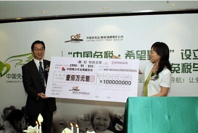 2008年6月12日,就在“中國(guó)免稅希望基金”的成立儀式上,中免集團(tuán)啟動(dòng)了覆蓋中國(guó)和世界免稅業(yè)的“重建家園-中國(guó)免稅與你點(diǎn)燃希望”愛(ài)心募捐活動(dòng)。借四川汶川大地震一個(gè)月之際,倡導(dǎo)公司全體員工、各下屬公司、各零售門(mén)店顧客以及長(zhǎng)期合作國(guó)際品牌供應(yīng)商再獻(xiàn)愛(ài)心,向?yàn)?zāi)后學(xué)校重建伸出援手,為災(zāi)區(qū)學(xué)子打造“諾亞方舟”,為孩子們提供一個(gè)安全的港灣,幫助他們盡早渡過(guò)難關(guān)。