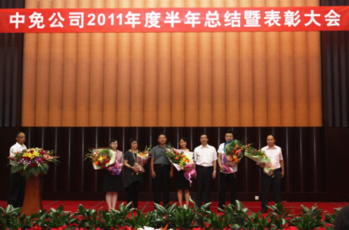 2011年8月12日,中免集團(tuán)2011年半年總結(jié)暨表彰大會(huì)在怡生園酒店召開。中免集團(tuán)領(lǐng)導(dǎo)班子、全體員工以及下屬企業(yè)部分員工代表共200余人參加會(huì)議。中國(guó)國(guó)旅股份有限公司副總裁兼董事會(huì)秘書薛軍代表股份公司參加了此次會(huì)議。