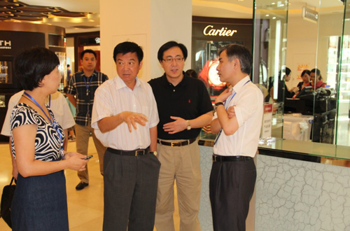 8月11日下午,國(guó)旅集團(tuán)有限公司董事、黨委書記兼國(guó)旅股份公司總裁張建華,國(guó)旅股份公司副總裁、中免集團(tuán)董事長(zhǎng)彭輝對(duì)中免集團(tuán)三亞免稅店進(jìn)行了視察。中免集團(tuán)副總裁兼三亞免稅店總經(jīng)理王軒,三亞免稅店副總經(jīng)理劉靜、三亞免稅店副總經(jīng)理管武及三亞免稅店相關(guān)部門負(fù)責(zé)人陪同視察。