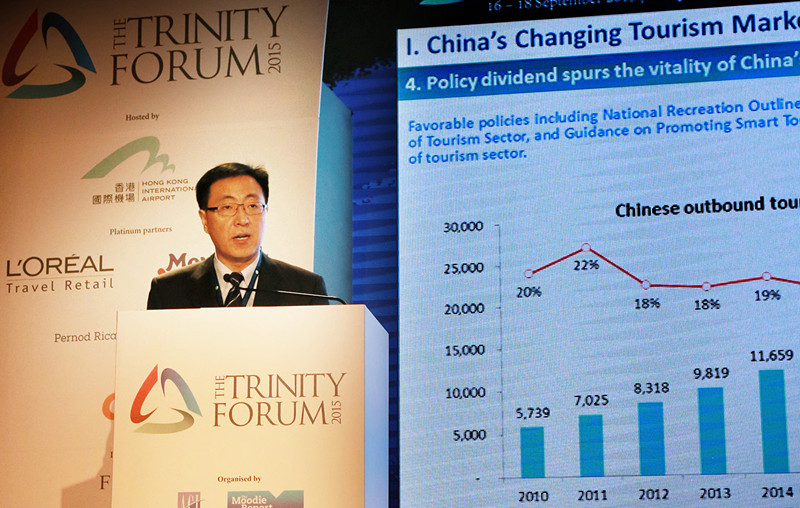 2015年9月16日至18日,受國際機(jī)場協(xié)會(ACI)及旅游零售行業(yè)權(quán)威媒體《穆迪報(bào)道》邀請,由中國國旅股份有限公司副總經(jīng)理兼中免集團(tuán)董事長、總經(jīng)理彭輝帶隊(duì),中免集團(tuán)副總經(jīng)理陳國強(qiáng)、王延光陪同參會的中免代表團(tuán),參加了在香港舉辦的三方論壇。今年三方論壇的主題是“三方共識,以消費(fèi)者為核心”,吸引了包括世界機(jī)場、旅游零售商和品牌商在內(nèi)的300多家國際知名企業(yè)、400多名代表參與。