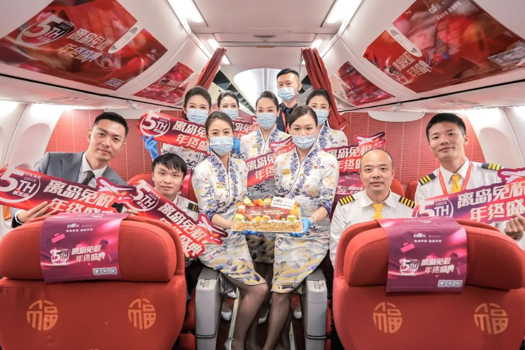中免集團(tuán)聯(lián)動(dòng)航空資源推出主題航班活動(dòng),帶來(lái)了沉浸式的新鮮有趣互動(dòng)體驗(yàn)。11月15日,cdf海口國(guó)際免稅城聯(lián)合cdf??谌赵聫V場(chǎng)免稅店、cdf??诿捞m機(jī)場(chǎng)免稅店,聯(lián)動(dòng)海南航空,于HU7782北京-??诤桨嗌祥_(kāi)展主題航班活動(dòng),通過(guò)營(yíng)造節(jié)慶氛圍,開(kāi)展互動(dòng)問(wèn)答等趣味活動(dòng),與機(jī)上旅客積極互動(dòng),并予以乘坐該航班旅客相應(yīng)購(gòu)物權(quán)益。cdf三亞國(guó)際免稅城也在HO1747南京—三亞的吉祥航空主題航班上為乘客精心準(zhǔn)備了主題蛋糕及消費(fèi)權(quán)益,在豐富乘機(jī)體驗(yàn)的同時(shí),更增強(qiáng)旅客對(duì)于免稅及活動(dòng)的了解。