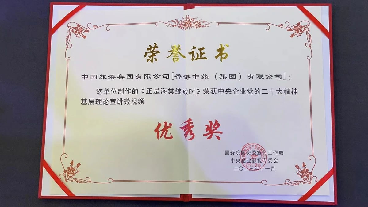 近日,由國務(wù)院國資委宣傳工作局主辦的2023年中央企業(yè)社會(huì)主義核心價(jià)值觀主題微電影(微視頻)展映征集活動(dòng)和中央企業(yè)黨的二十大精神基層理論宣講優(yōu)秀微視頻展示活動(dòng)在京成功舉辦。兩項(xiàng)活動(dòng)各評(píng)選出百部優(yōu)秀作品,其中,由中國旅游集團(tuán)選送,中免集團(tuán)三亞市內(nèi)免稅店有限公司(中國旅游集團(tuán)中免股份有限公司全資子公司)拍攝制作的微視頻《正是海棠綻放時(shí)》榮獲“中央企業(yè)黨的二十大精神基層理論宣講微視頻”優(yōu)秀獎(jiǎng)。