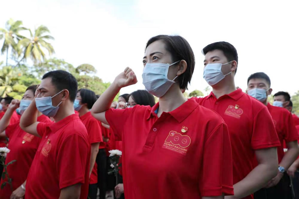 三亞店黨委組織全體黨員進(jìn)行莊嚴(yán)的宣誓活動(dòng)。一句句鏗鏘有力、擲地有聲的錚錚誓言響徹免稅店上空,是為中國共產(chǎn)黨成立100周年獻(xiàn)禮,更是對(duì)黨、對(duì)人民的鄭重承諾。