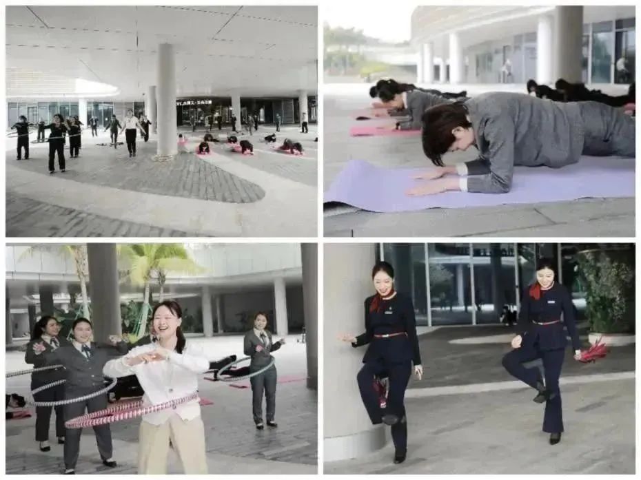 3月6日、7日,以"運動燃激情 活力迎三八"為主題,于免稅店下沉廣場開展"三八節(jié)"趣味健身活動,活動包含一分鐘跳繩、一分鐘呼啦圈、一分鐘踢毽子、仰臥起坐、平板支撐五個"挑戰(zhàn)"項目,共計1400余名女職工到場參與。精神煥發(fā)的女職工們身姿矯健,臉上洋溢著快樂自信的笑容,在三月的春風(fēng)中共同跳出青春的節(jié)奏……