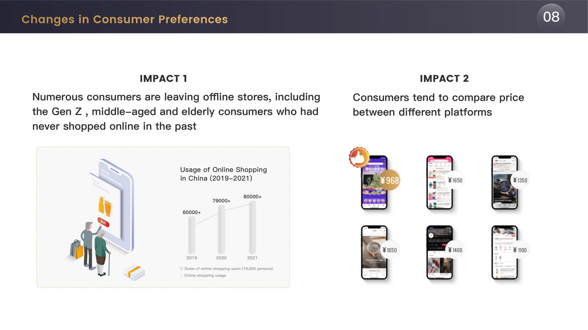 人們消費(fèi)方式的變化給運(yùn)營(yíng)商帶來(lái)了巨大沖擊,包括大量消費(fèi)者離開線下門店,對(duì)商品價(jià)格更加敏感等。