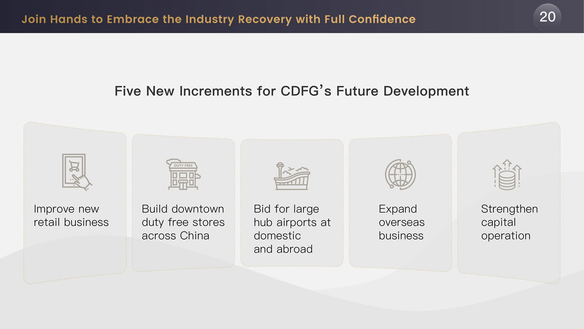 他表示中免集團(tuán)未來(lái)將持續(xù)完善和強(qiáng)化新零售業(yè)務(wù),繼續(xù)開展國(guó)內(nèi)的市內(nèi)免稅店建設(shè)。"以新建成的28萬(wàn)平方米體量??趪?guó)際免稅城為代表的大型市內(nèi)免稅店,將是我們未來(lái)除機(jī)場(chǎng)、口岸業(yè)務(wù)外重要的業(yè)務(wù)增長(zhǎng)點(diǎn)。"此外,中免集團(tuán)不會(huì)停止海內(nèi)外大型樞紐機(jī)場(chǎng)的投標(biāo)腳步,并將在母公司中國(guó)旅游集團(tuán)的領(lǐng)導(dǎo)下,不斷拓展海外業(yè)務(wù)。作為同時(shí)在A+H股市場(chǎng)擁有融資能力的上市公司,中免集團(tuán)也希望與合作伙伴開展更為廣泛的資本合作,共同深耕中國(guó)以及全球市場(chǎng)。