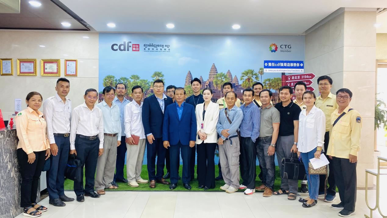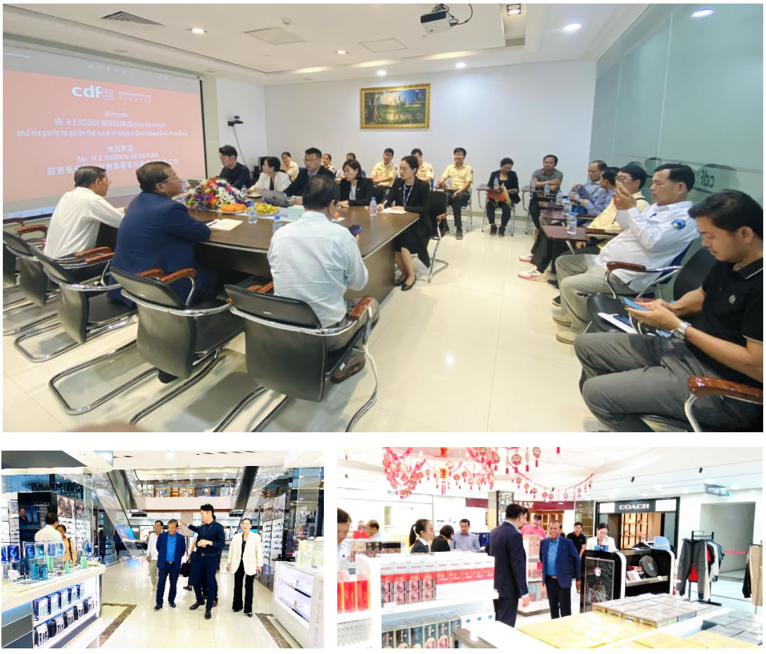 ▲ 暹粒省副省長(zhǎng)及相關(guān)旅游從業(yè)者一行在cdf吳哥市內(nèi)免稅店合影